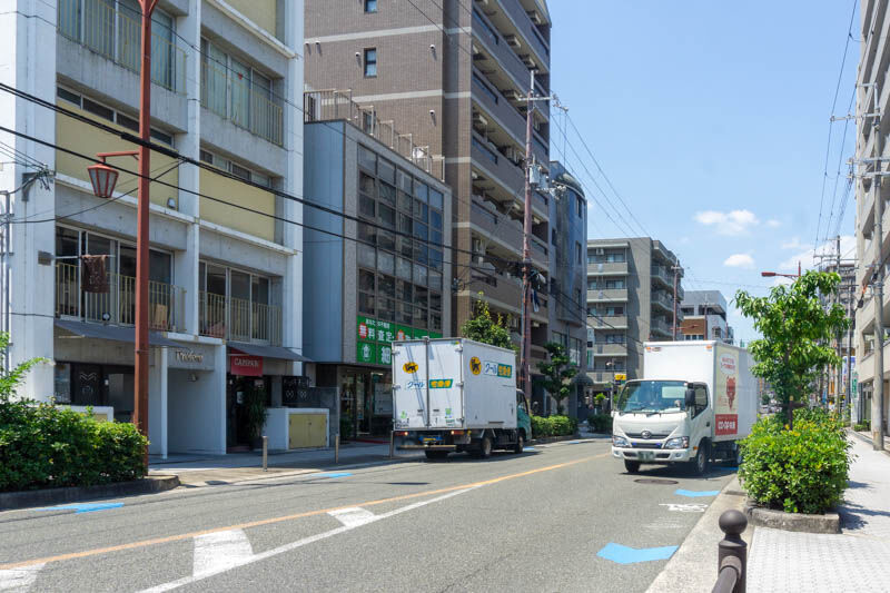 こっちに行くと、3月にオープンしたローソンや建替工事中の「flower shop LEAF」などがあり、阪急茨木市駅方面。