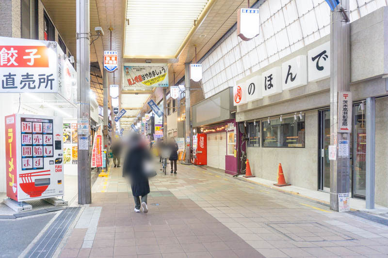 お店の向かいには、2021年にオープンしたふくちぁん餃子があり、こっちに行くと、記事にしたフルーツパーラー森田などを通り、茨木神社の方へ。