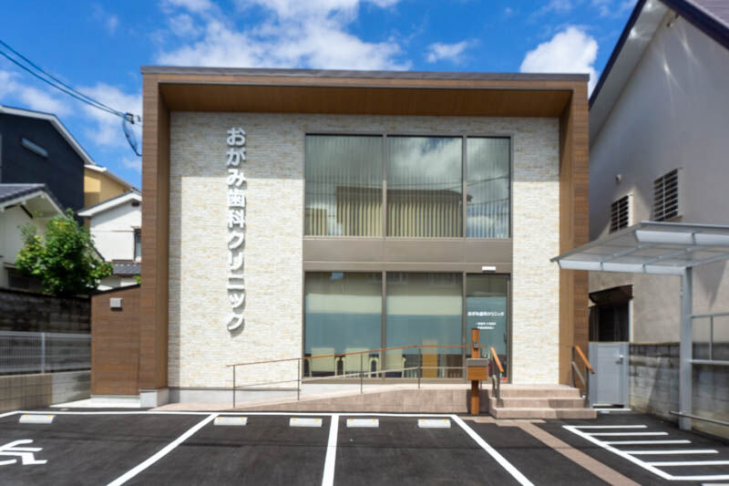住宅街の中で少し分かりづらいですが、府道14号線沿いのヒマラヤを見付山方面に進み、トッピングパン屋と見付山公園の間の道を進むと、おがみ歯科クリニックがあります。