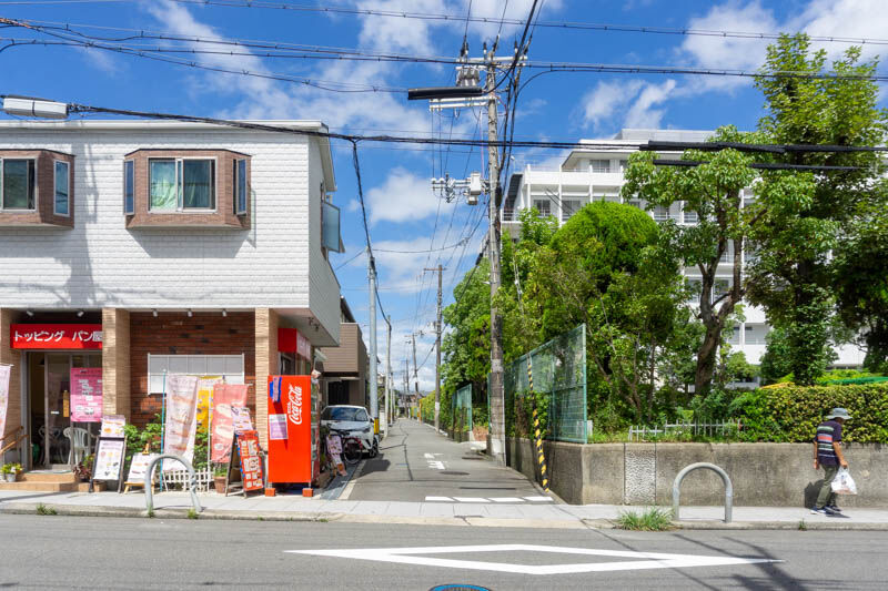 こっちに行って突き当りを右に行くと、見付山公園やトッピングパン屋のそばからグリーンロードへ続く道へ出ます。