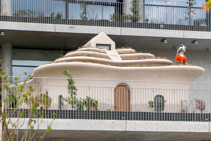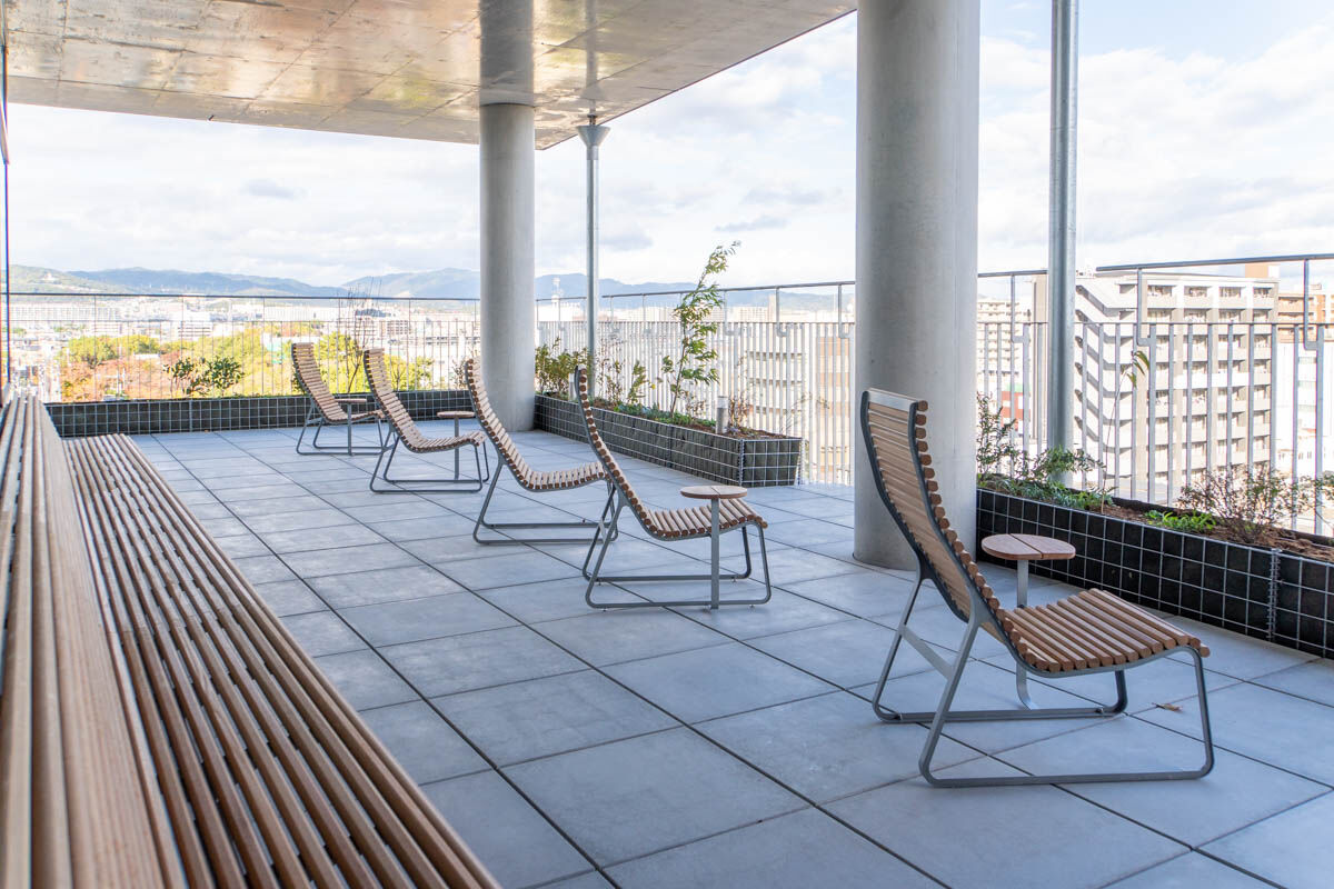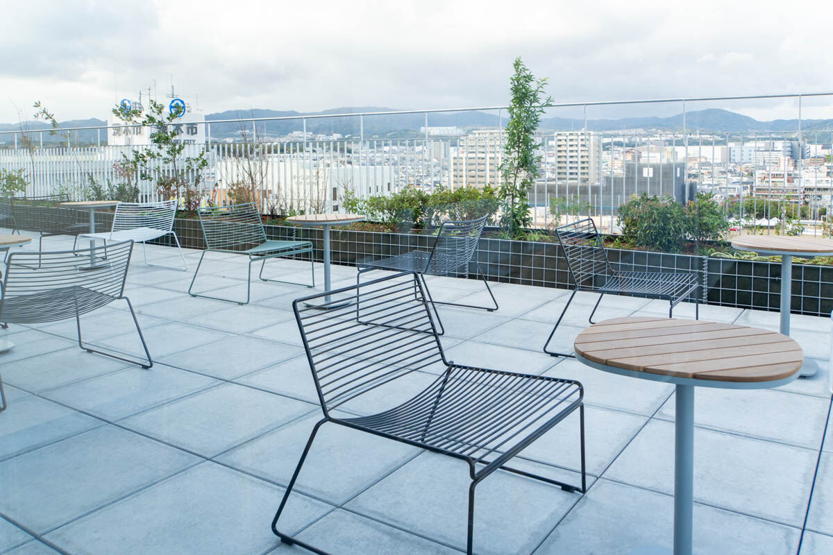 建物中央には中庭のような形で屋上広場も。周囲が建物で遮られているため、夜は街中よりも星空が綺麗に見えるとか。