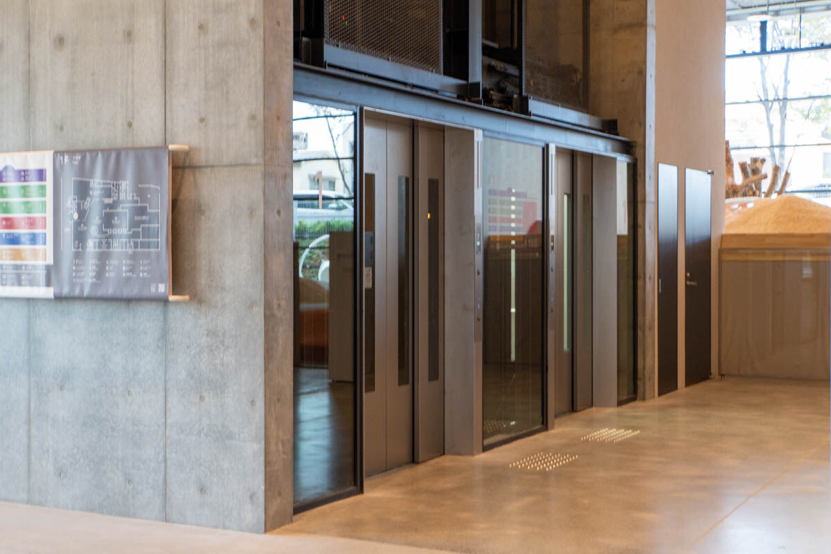 エスカレーター横には、ガラス窓で外の様子が分かるエレベーターもあります。
