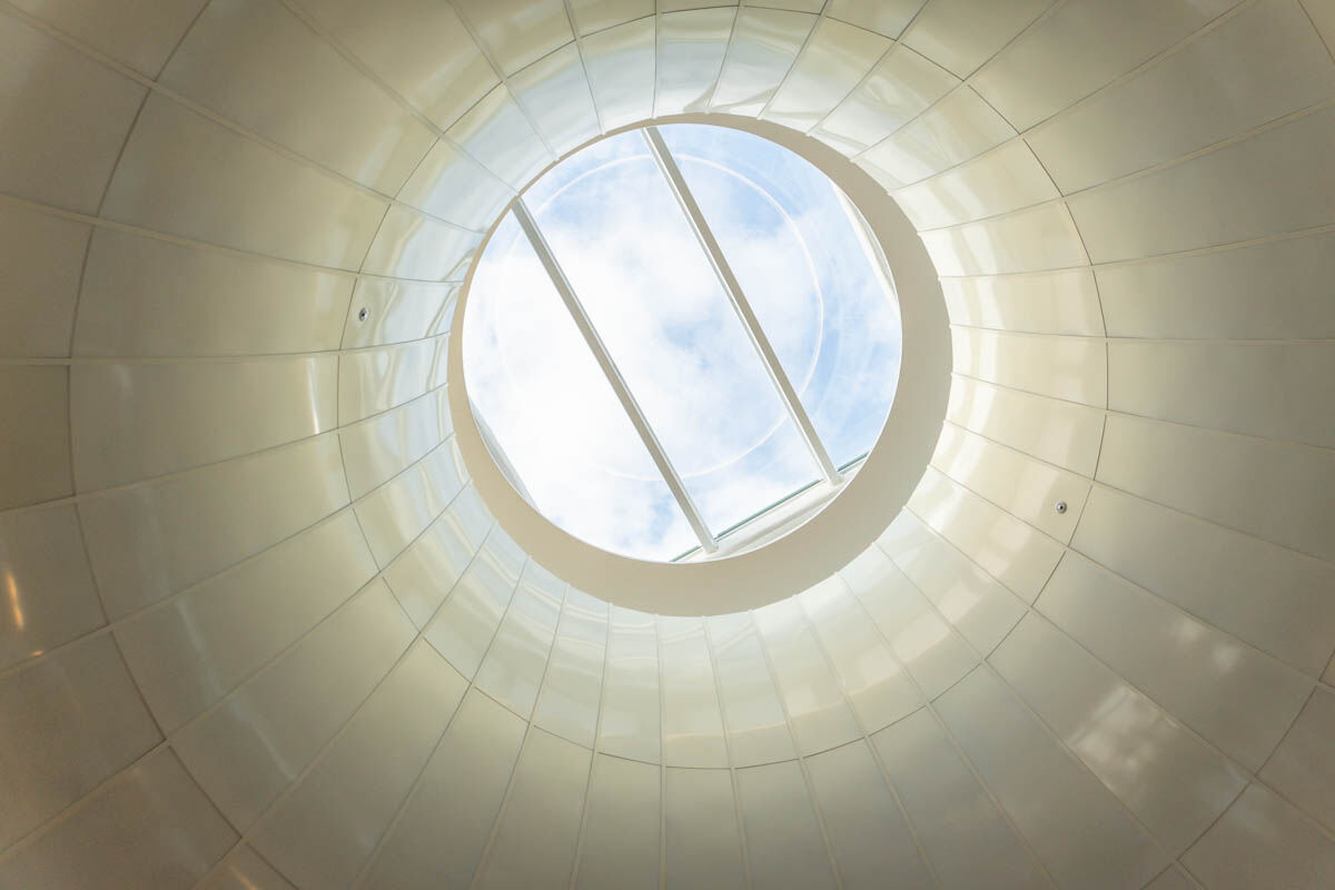 最上階の7階まで来ると、縦の道(吹き抜けのエスカレーター)の天井から空が見えました。