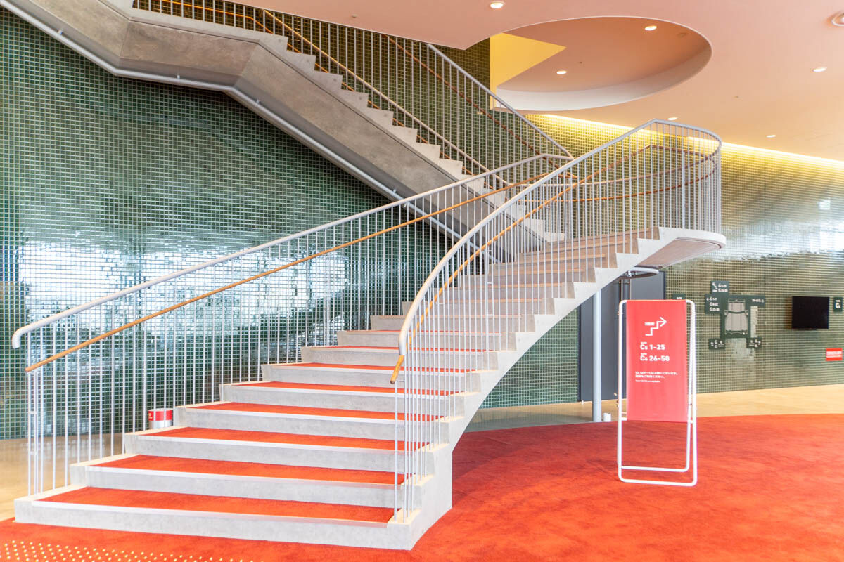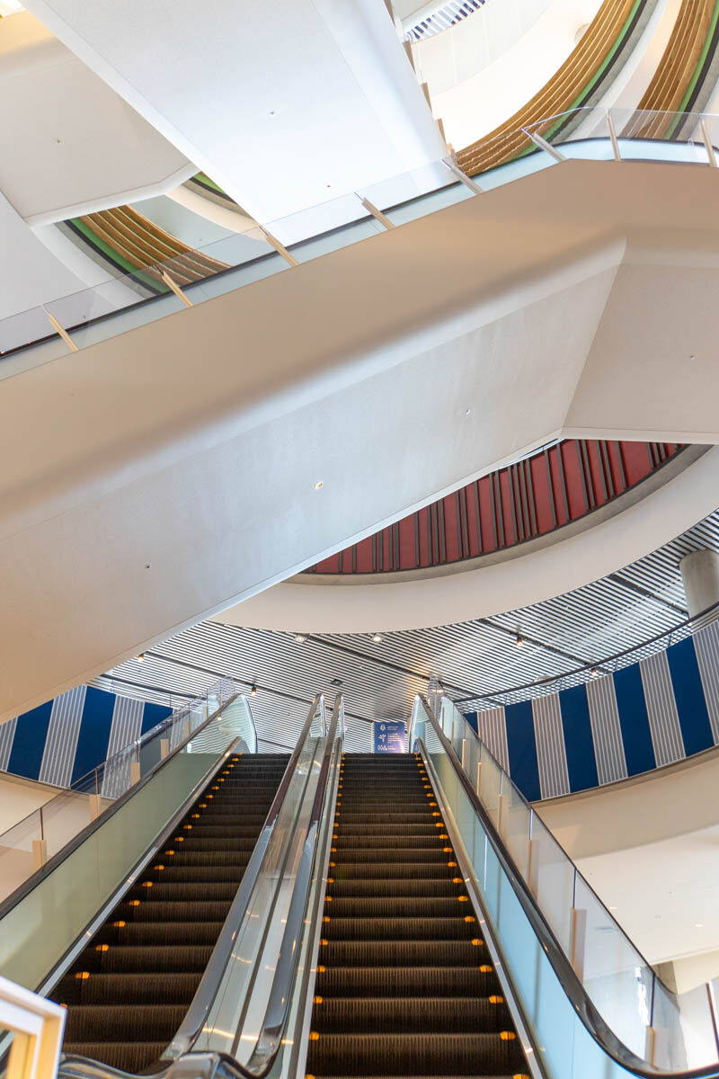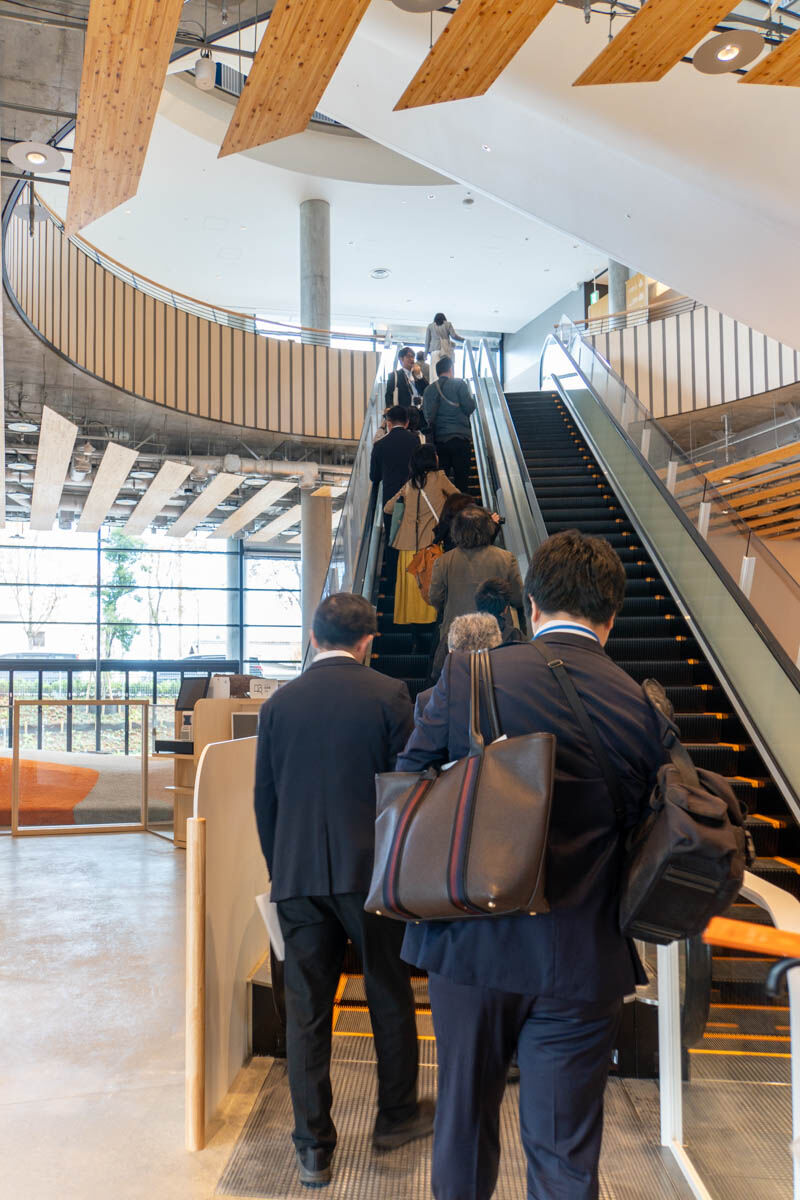 「縦の道」をつなぐエスカレーターも少しづつ位置がずらされていて、各階の雰囲気を感じ取れるように。