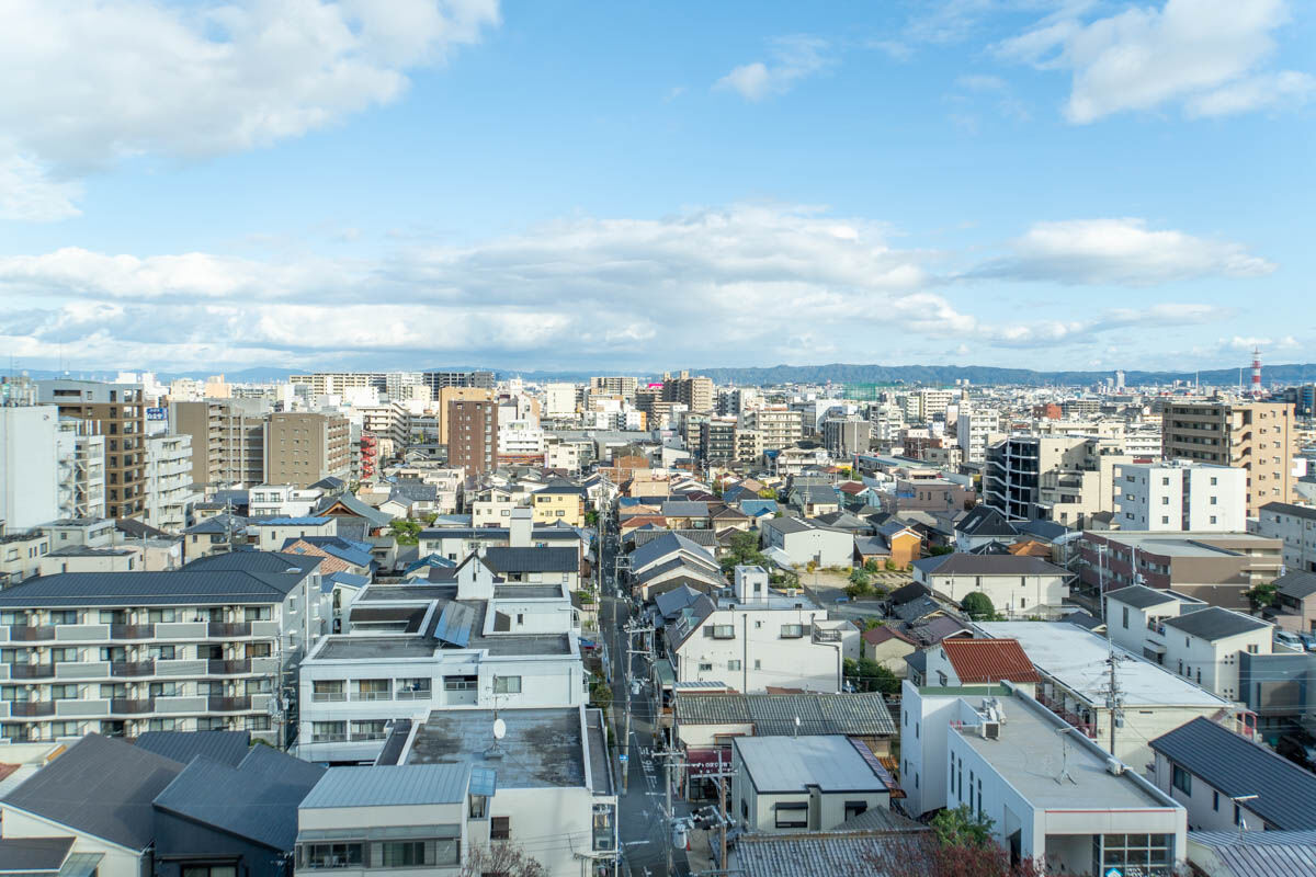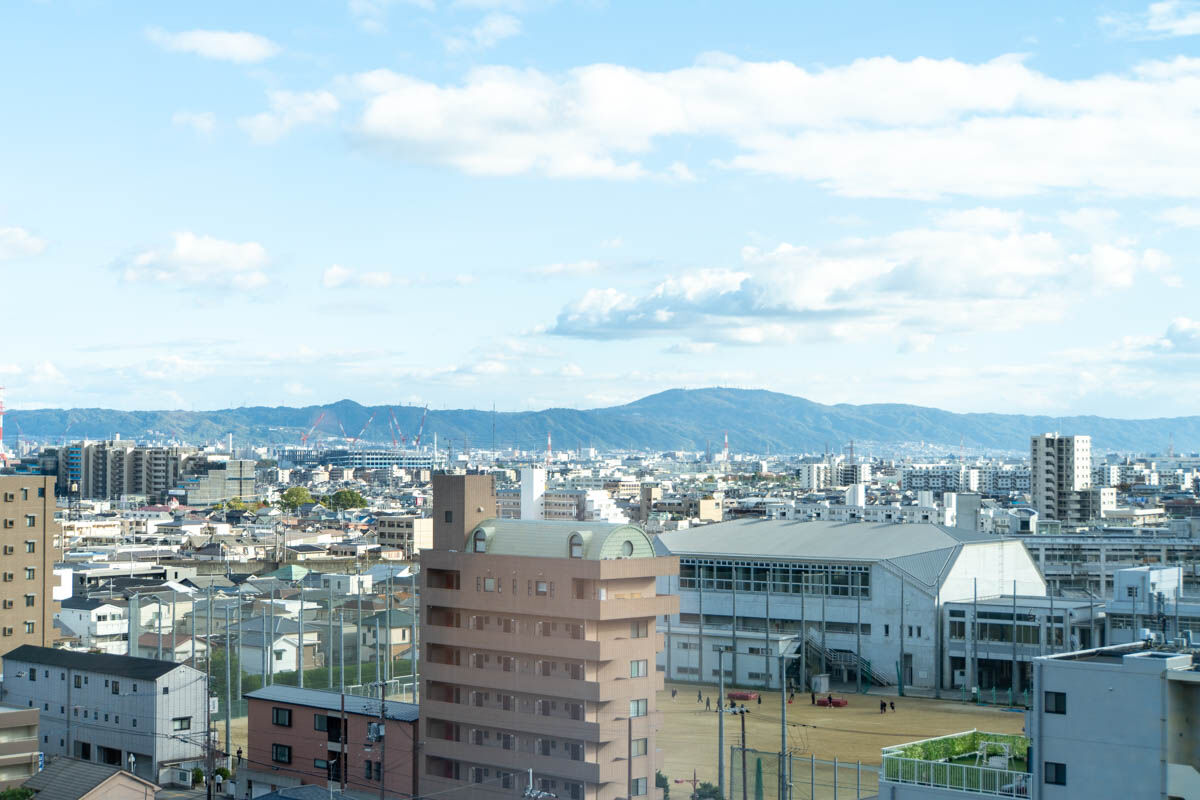 この景色!!!茨木市内が一望できまして、奥には生駒山を望むこともできます。