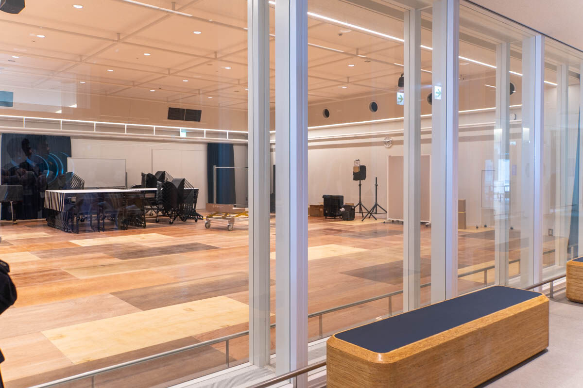 大開口を開放すると、後ほど紹介する「きたしんホール」や「大屋根広場」との一体的な利用もできるんだとか。