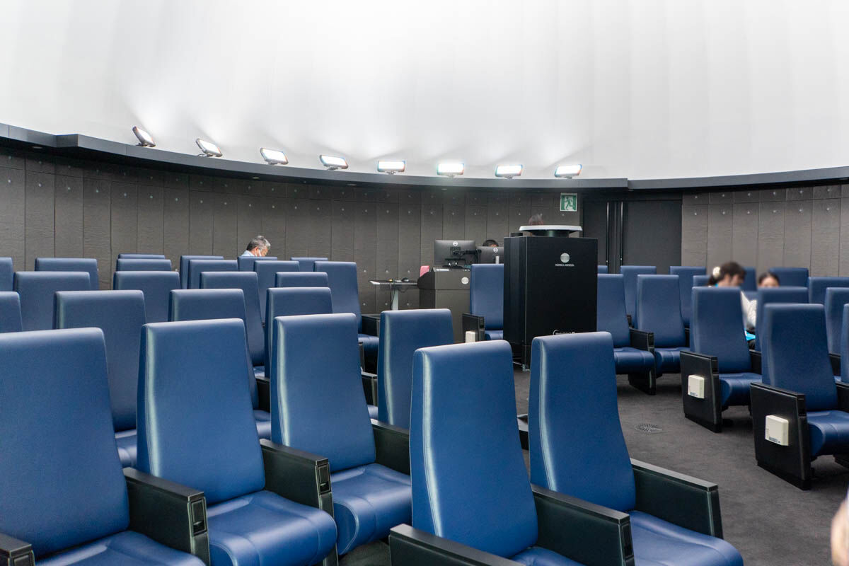 プラネタリウムとしての利用だけでなく、演奏会などでも使用できるようにこのようなイスを採用したんだとか。