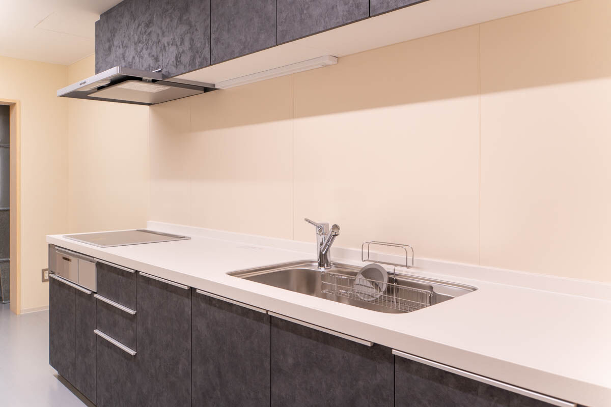 イベントなどで飲食を扱うときにも利用できるように1階に調理実習室を整備。
