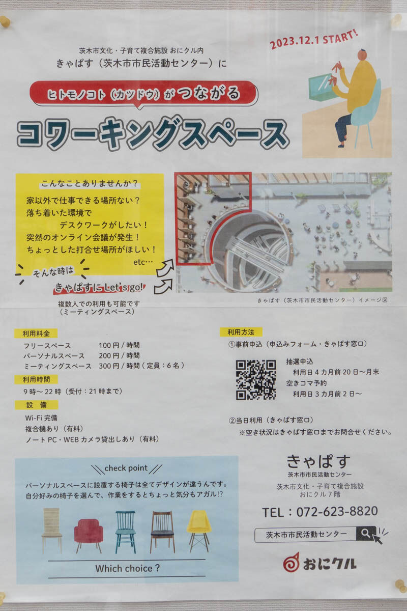 子育て支援拠点や子どもの屋内遊び場、ホール、図書館(約10万冊)、市民活動センター、プラネタリウム 、カフェ、貸室等が入り、芝生広場を併設する地上7階建ての複合施設。茨木市役所の向かいにあった市民会館跡地に建設されました。