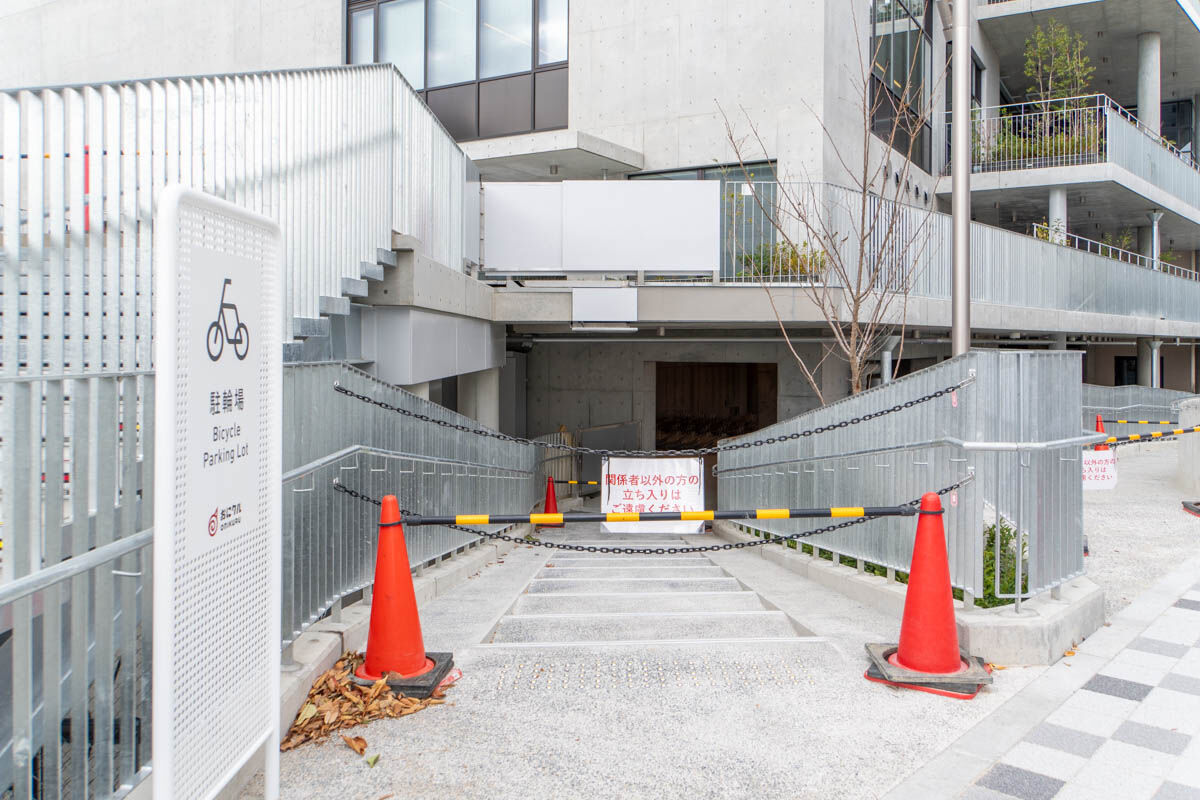 裏の駐輪場に降りるのには、階段・スロープ・エレベーターがあります。