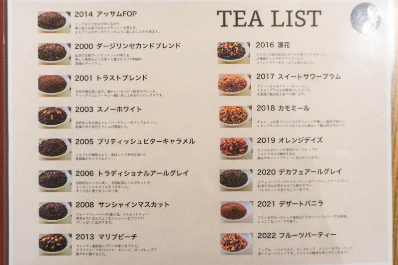 ティーリストなるものがあって、めっちゃいろんな味がありました!ティー好きはたまらないのでは?