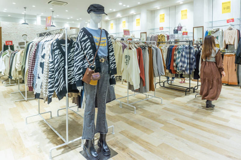 RETRO GIRLは大阪に3店舗あり、近くだとくずはモールにお店があります。今どきの女性向けの服や雑貨などを取り扱っている様子。
