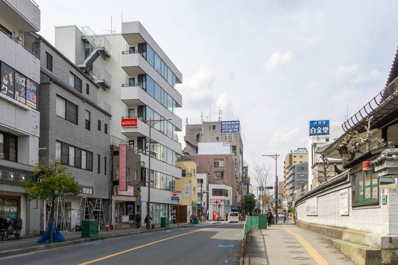 反対方向に行くと、奥に阪急茨木市駅が見えています。