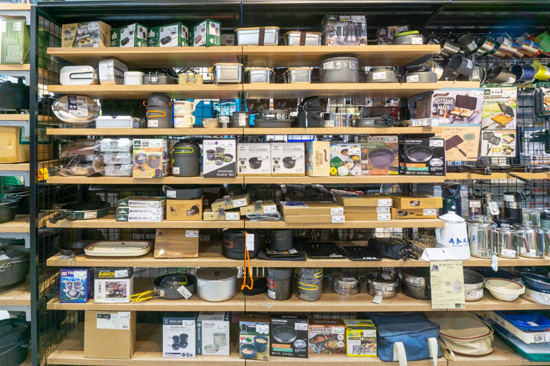 みのおキューズモール店はファミリー層の来店が多いため、家族で使えるキャンプ用品を充実させているとのこと。もちろんソロキャンプ用の商品もありますよ〜!