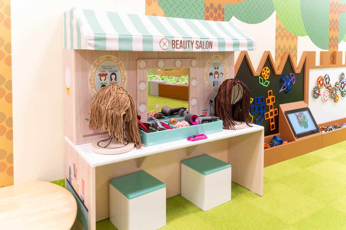 他にもキッチンや美容室のセットもありましたよ〜!どのコーナーも本格的なおもちゃがたくさん揃っていて楽しそう。