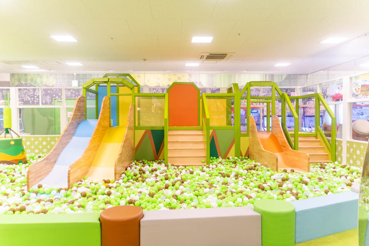 奥には巨大な滑り台の遊具とボールプール。