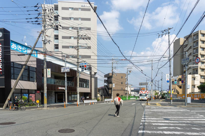 こっちにいくと、JR千里丘駅があってさらに進むと吹田市に入り、万博公園方面。