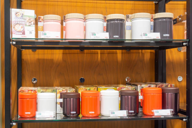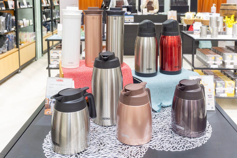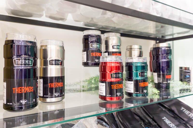 明るい店舗内にサーモスの商品がズラリ。