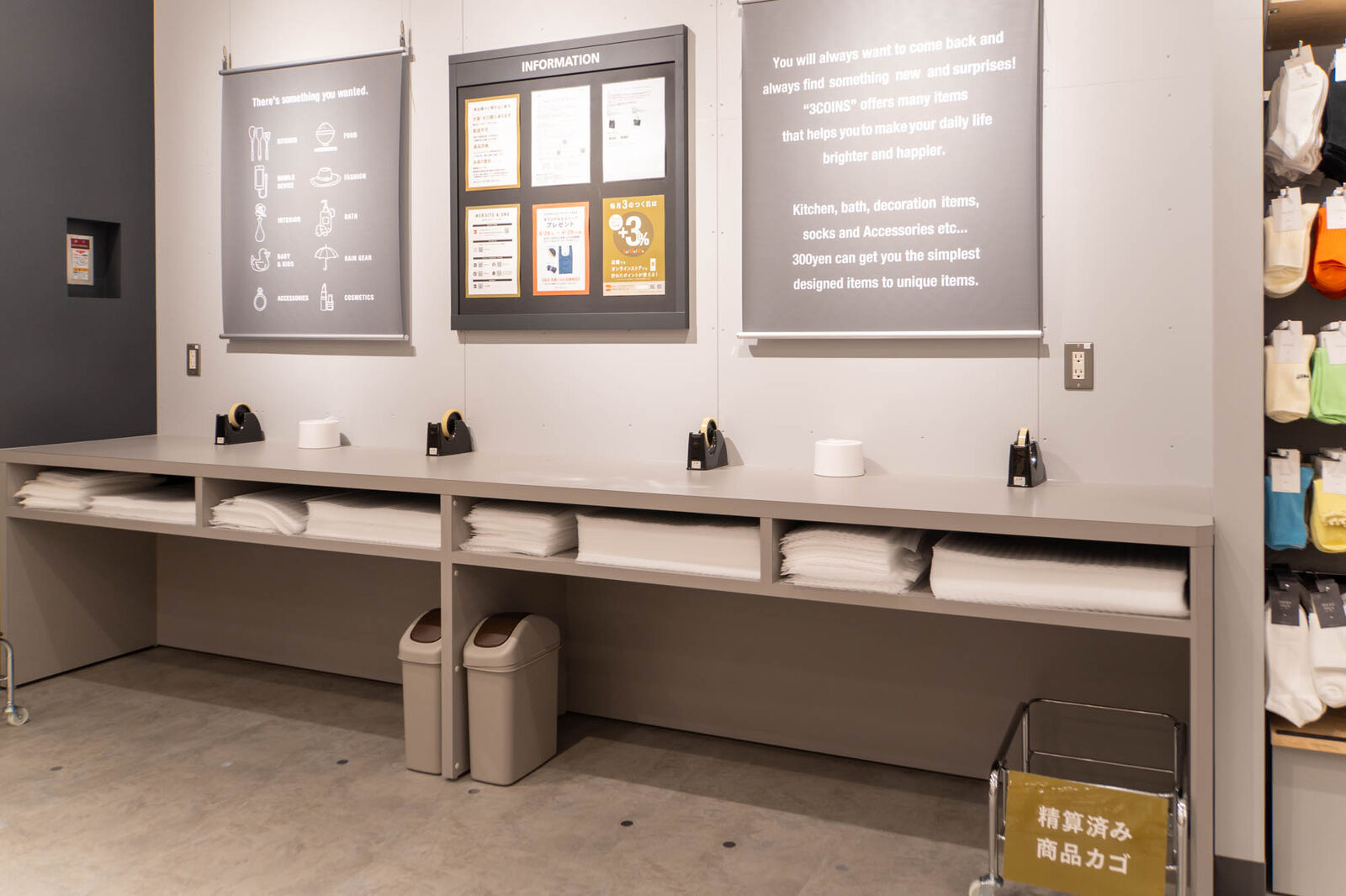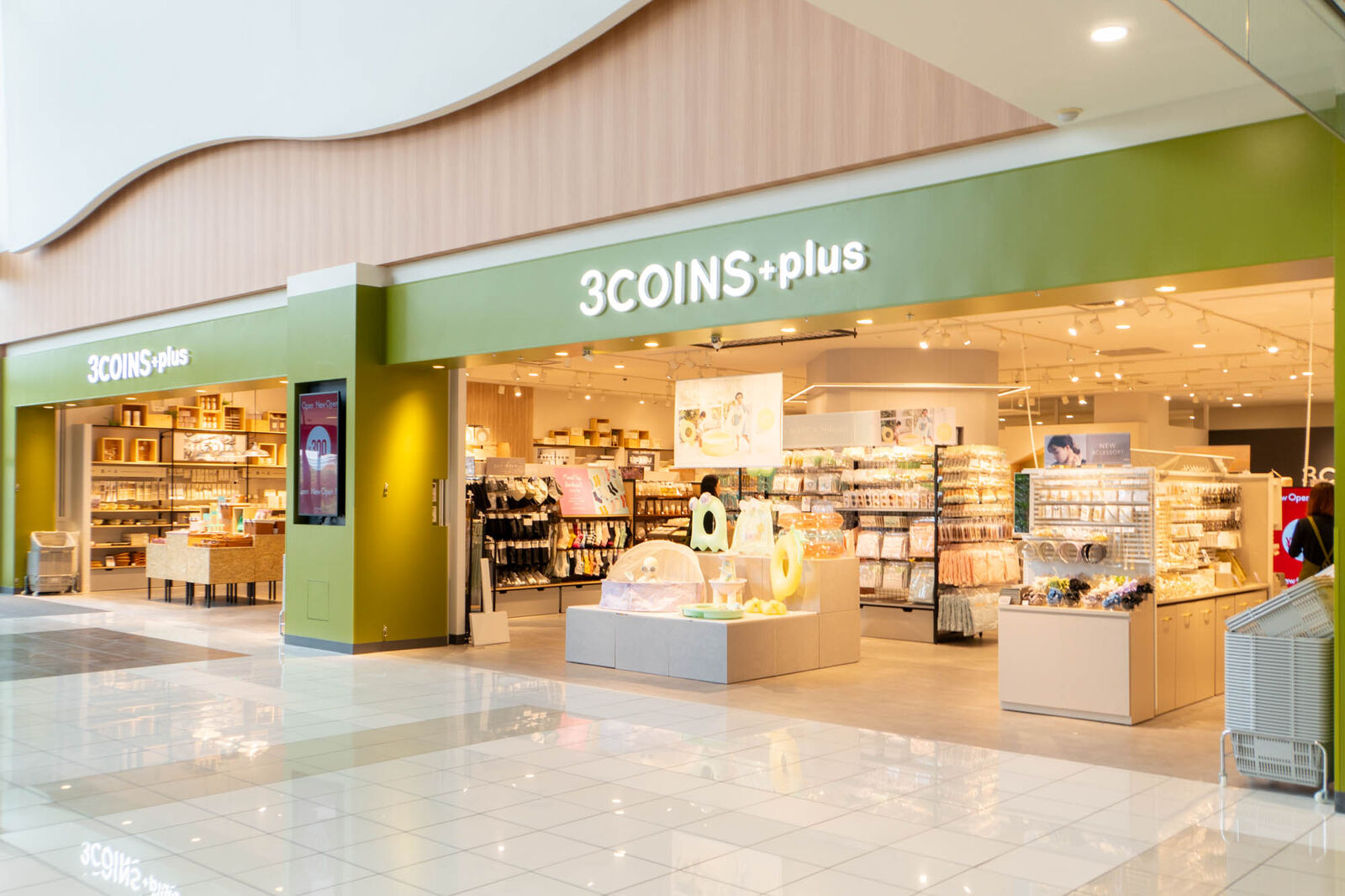 「3COINS」は元々2階にありましたが、リニューアルに伴い1階に移設。さらに「3COINS+plus」となってパワーアップ!