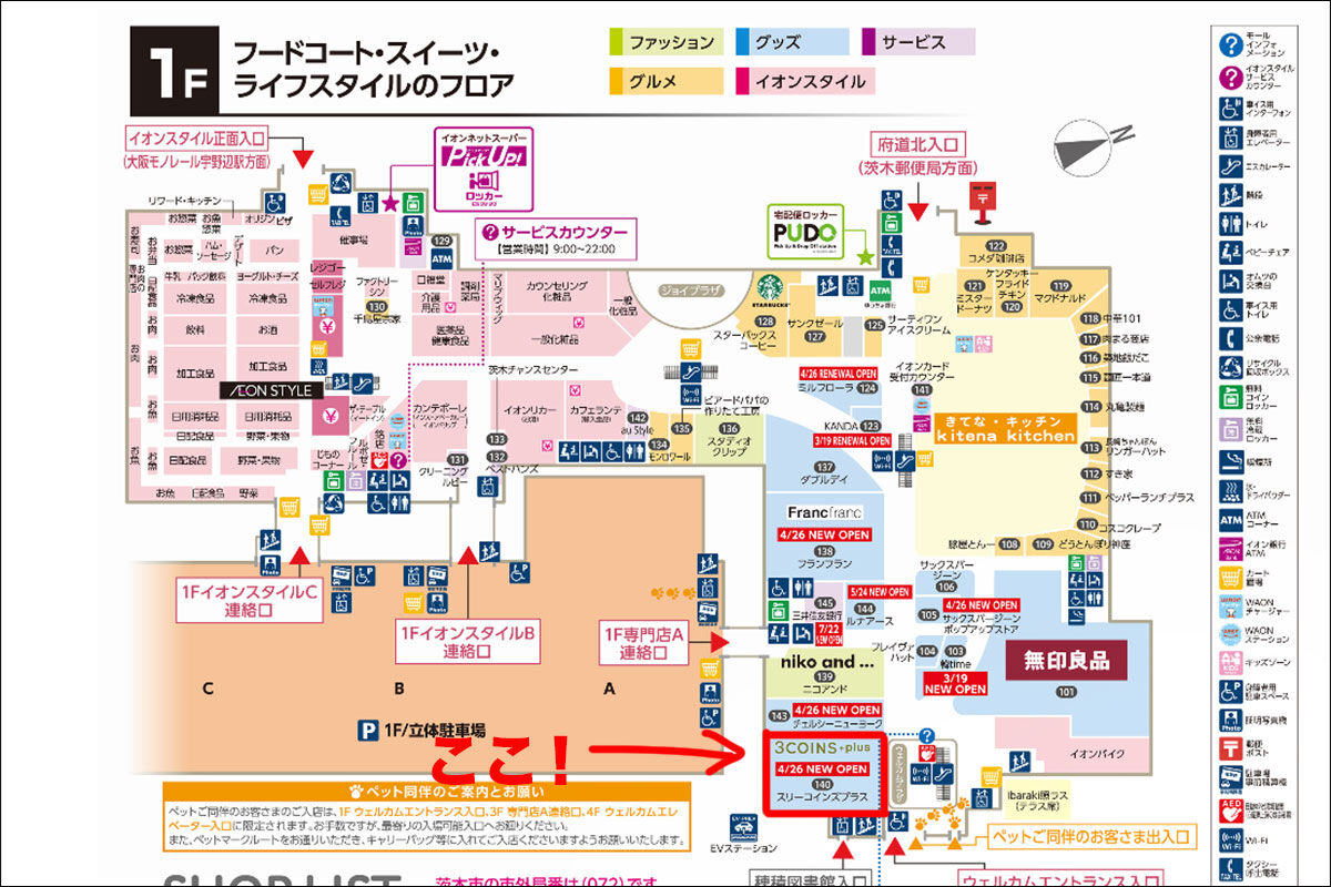 住所 大阪府茨木市松ケ本町8-30 イオンモール茨木 1F