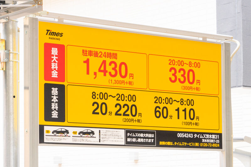 最大料金は駅前ということもあり1430円。夜間の最大料金は逆に330円とめっちゃ安いです。