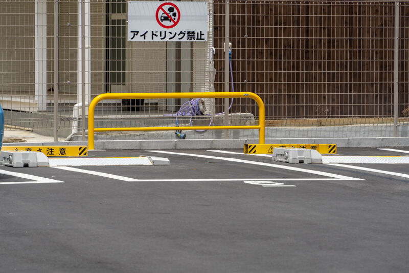 下から板があがってくるフラップ式コインパーキング。駐車可能台数は8台です。