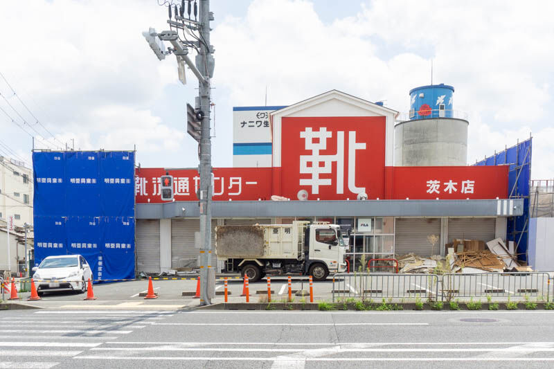 東京靴流通センターの後ろ、2月に閉店した「ジャパン」の跡地では、冬頃のオープンに向けて建て替え工事が進んでいます。