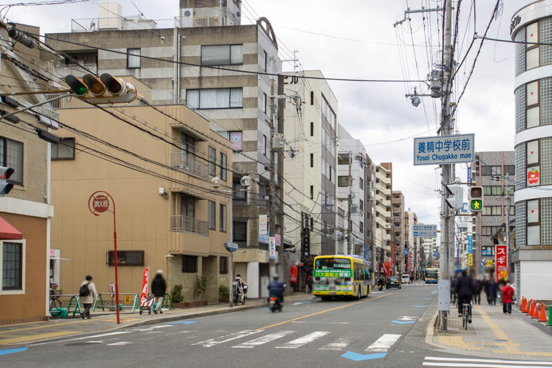 反対方向に行くと、茨木ショップタウンや春日丘高校などがあり府道14号線へ。