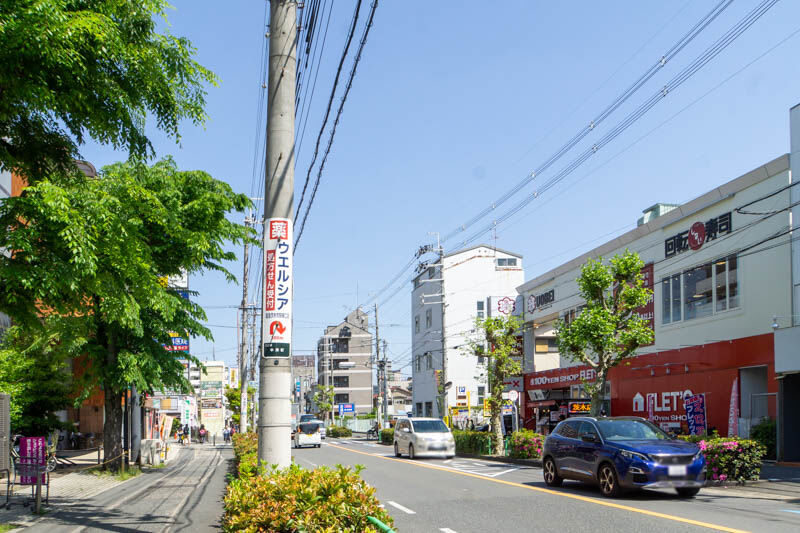 反対方向に行くと、イオンスタイル新茨木やプチプランスなどがあります。