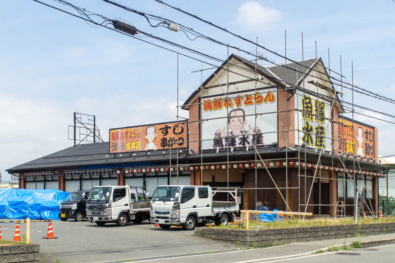 府道16号線ぞい三箇牧の「海鮮レストラン 魚輝水産」が閉店してる
