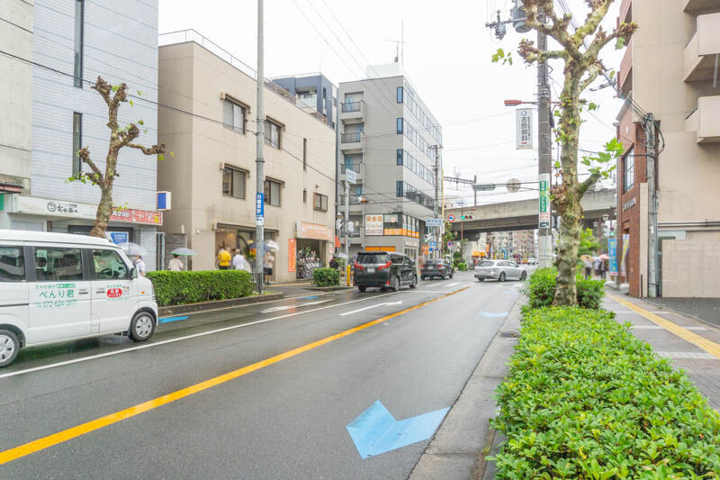 東西通り沿いにありまして、こっちに行くと、グルメの記事にしたラーメン店「地球規模で考えろ 未来へ」などがありJR茨木駅方面。