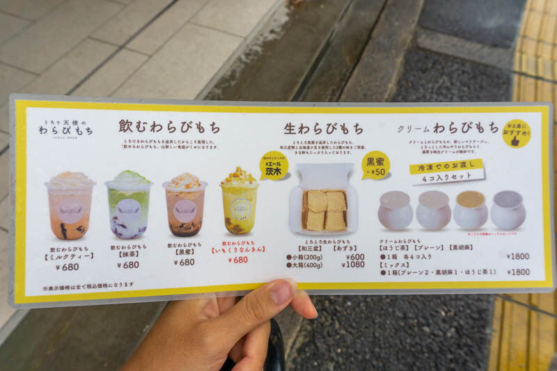 阪急茨木市駅ちかくにつくってたわらび餅専門店「とろり天使のわらびもち」がオープンしてる。雨でも列とだえなかった
