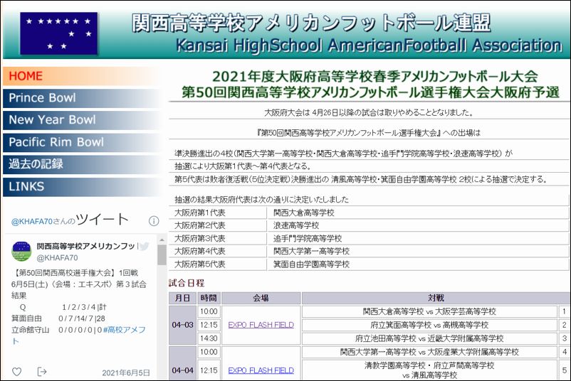 関西高校アメフト連盟のウェブサイトによると…。