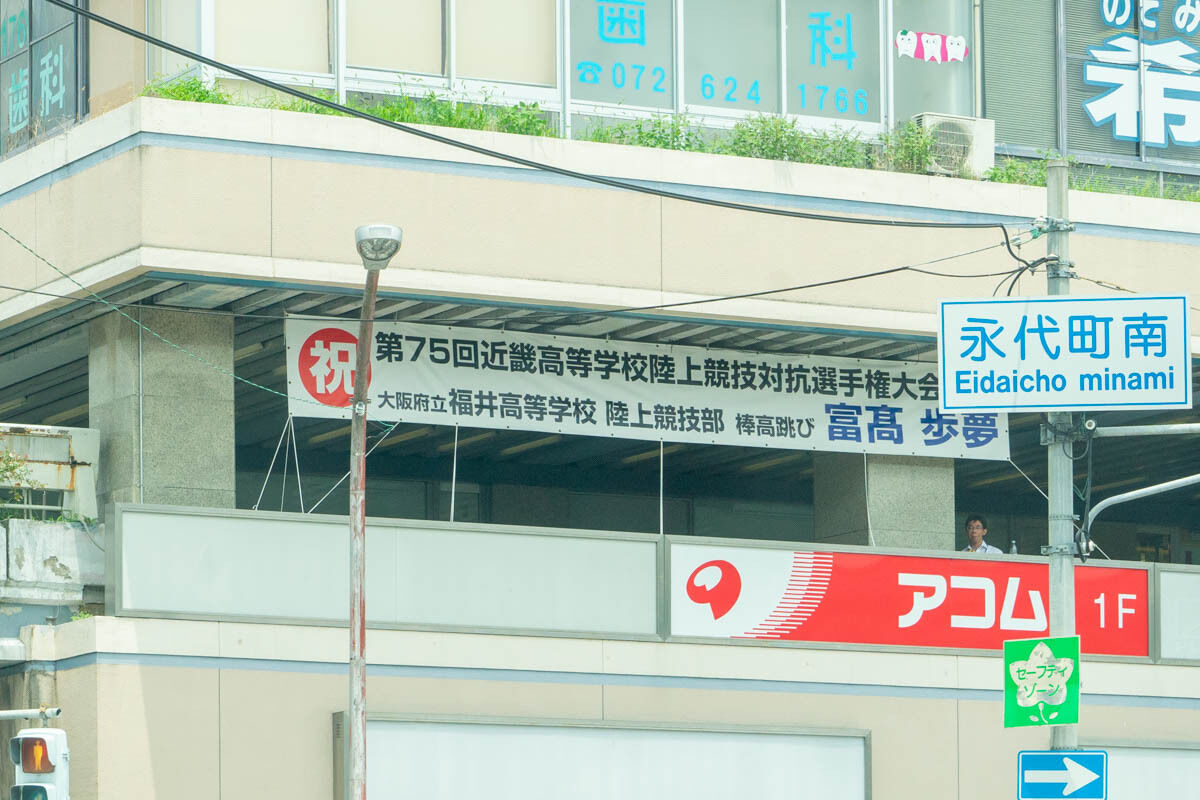 阪急茨木市駅ロータリーに横断幕が掲げられていました。