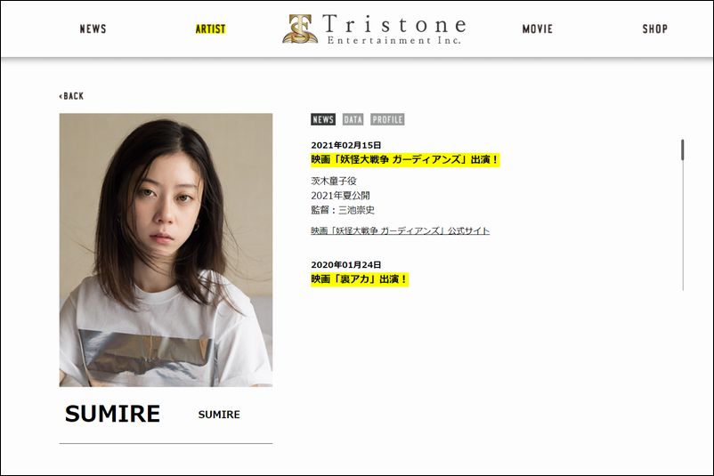 所属事務所の公式サイトにも「映画『妖怪大戦争 ガーディアンズ』出演!茨木童子役」とあります。