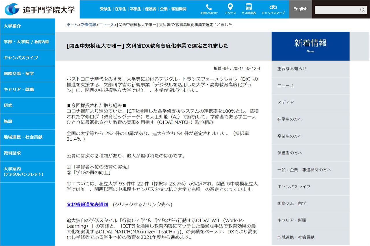 追大が文科省の「DX教育高度化」って事業に選ばれたみたい。関西の中規模私大で唯一