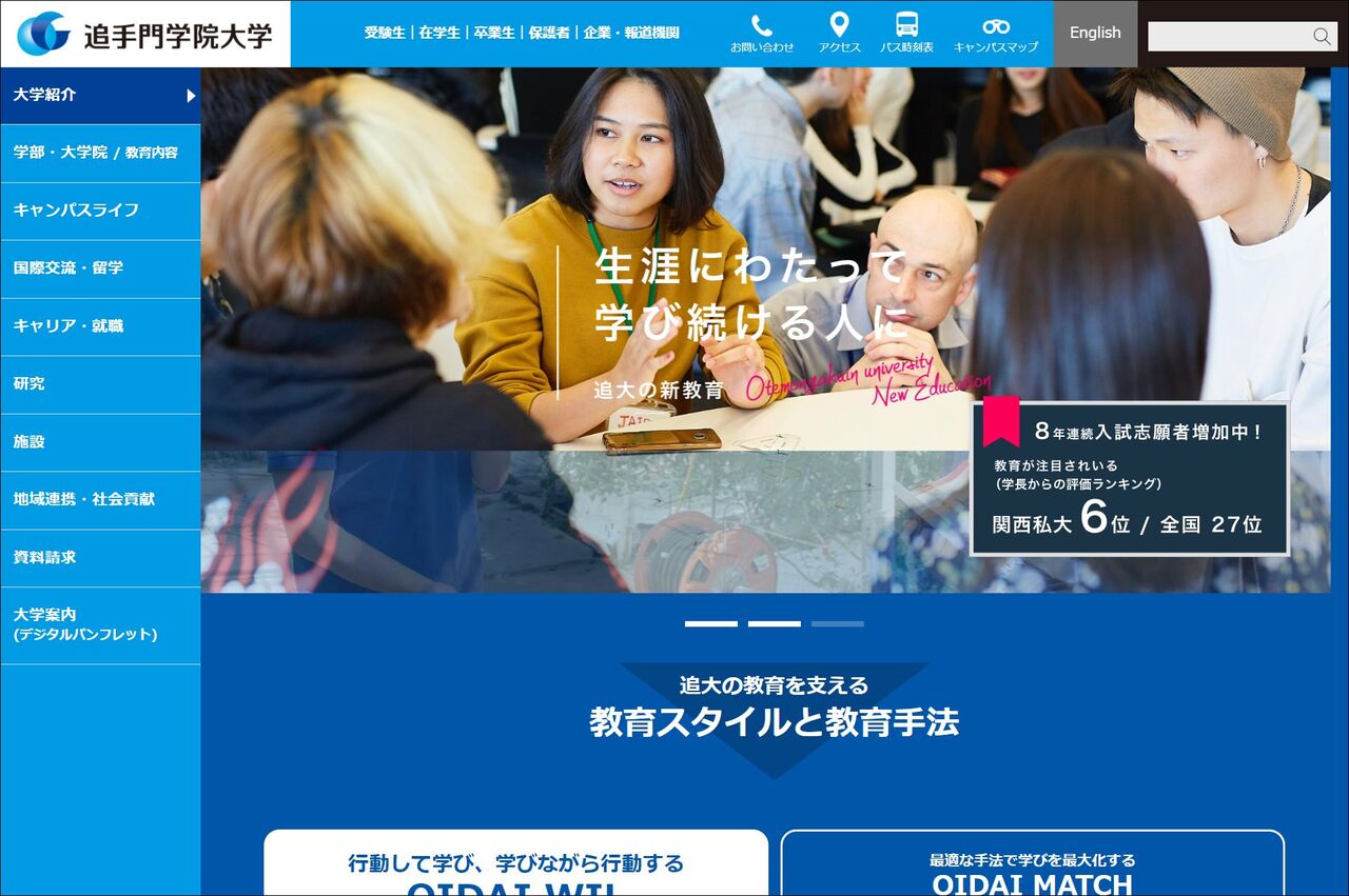 (追手門学院大学の大学案内デジタルパンフレットより)
