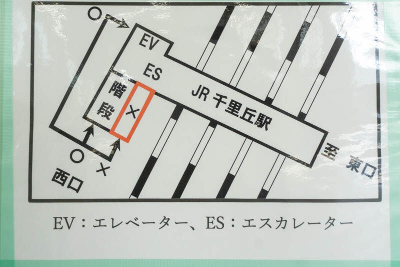 JR千里丘駅で階段利用を促すための実証実験が実施されてる。1月31日(予定)まで