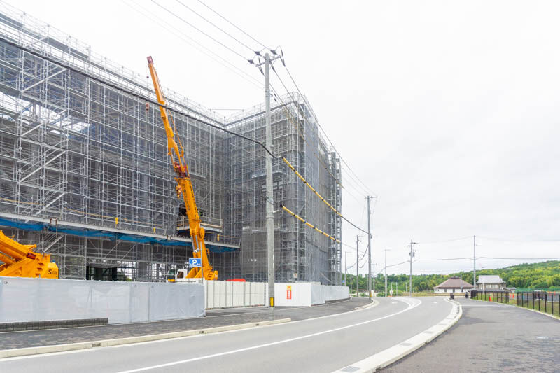 骨組みができていて、四角い建物。