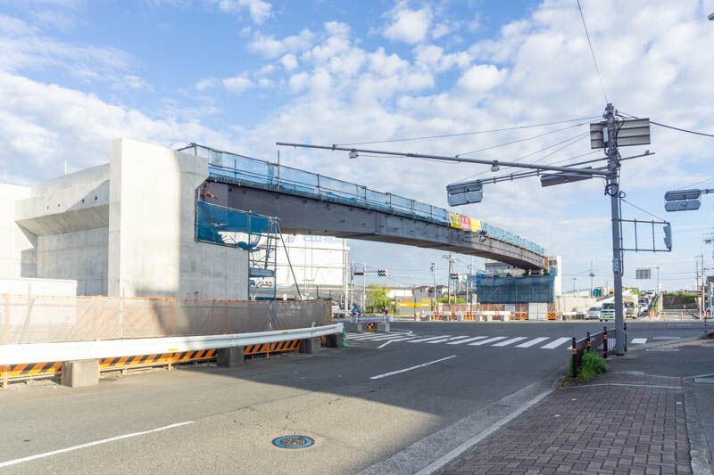 この交差点では「道路の立体交差化工事」が行われており、工事については以前記事にしています。