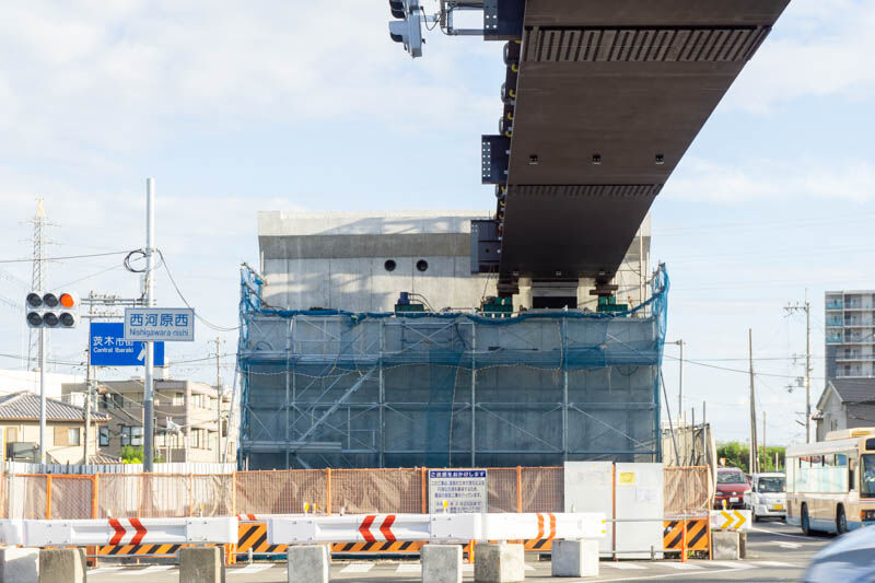 先日記事にしましたが、9月25日と10月2日は工事のため夜間通行止めになっていまして、9月27日に見に行ってきたところ、予想通り高架が繋がり立体化が一気に進んでいました。