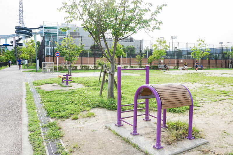 近くには健康遊具があり、こちらも新しいです↓